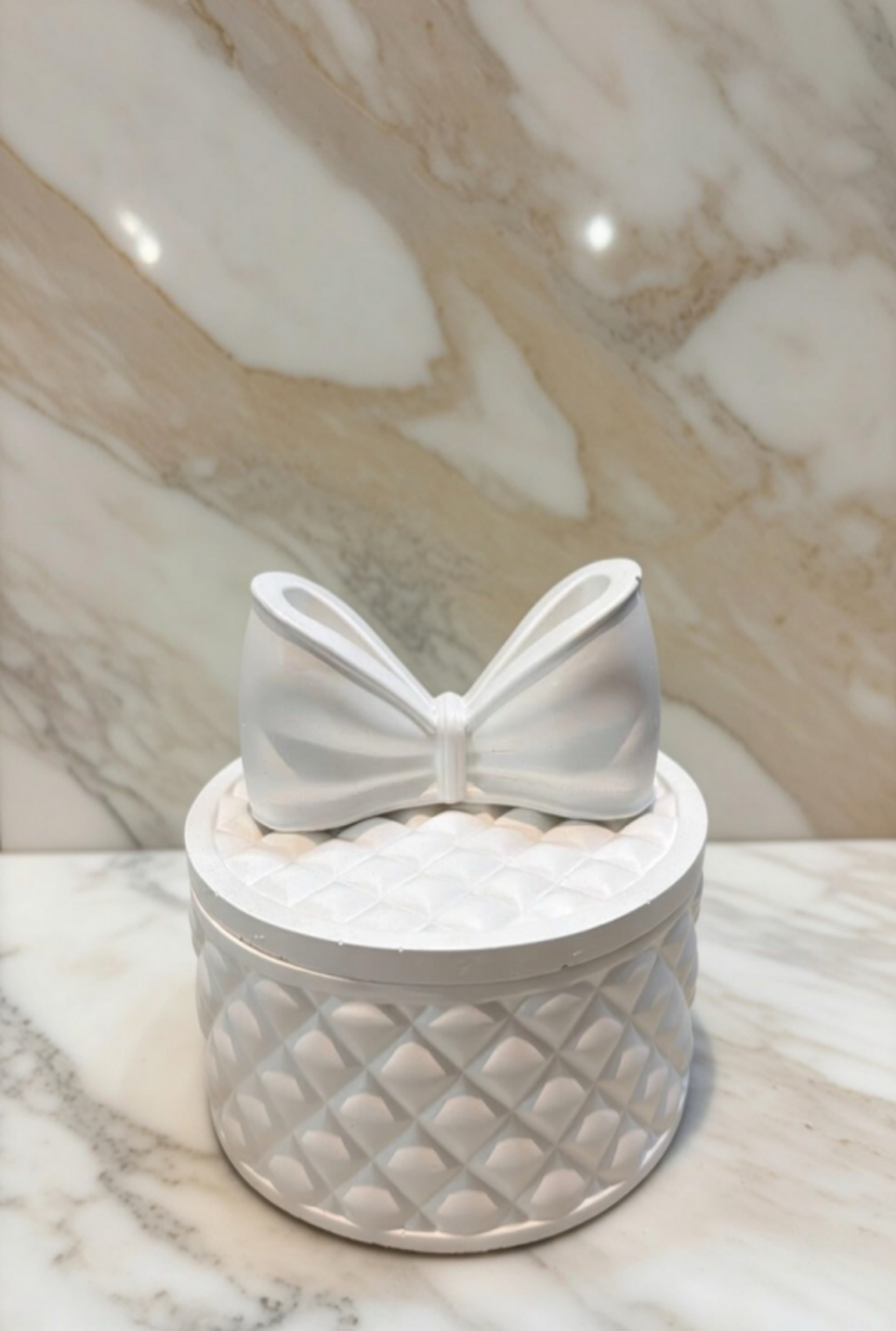 The Velvet Bow Jar by Crescent Handcraft Studios is a charming handcrafted décor piece designed to bring softness, elegance, and luxury to your interiors. Featuring a beautiful velvet bow accent, this decorative jar adds a graceful and sophisticated touch to vanities, coffee tables, bedside corners, shelves, and festive décor setups. Its premium finish and timeless design make it perfect for storing small accessories while enhancing the visual appeal of your space. Ideal for gifting and stylish home styling, this jar blends functionality with artistic beauty, making it a must-have decor accessory for modern and classic homes alike.